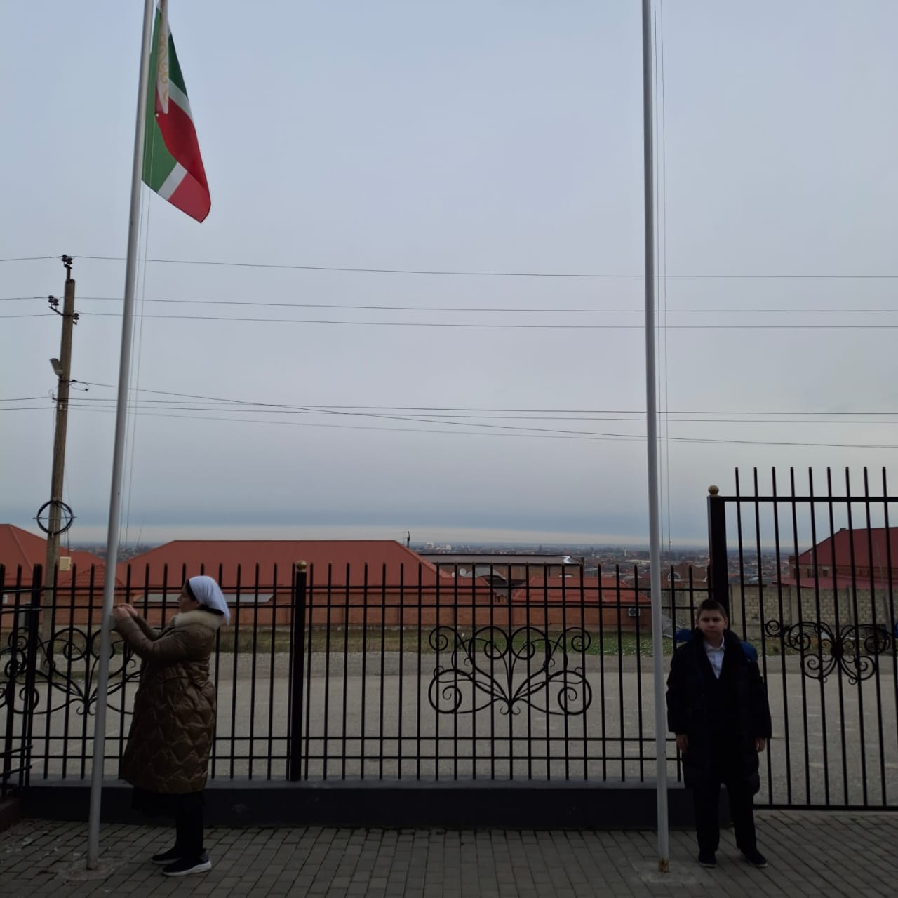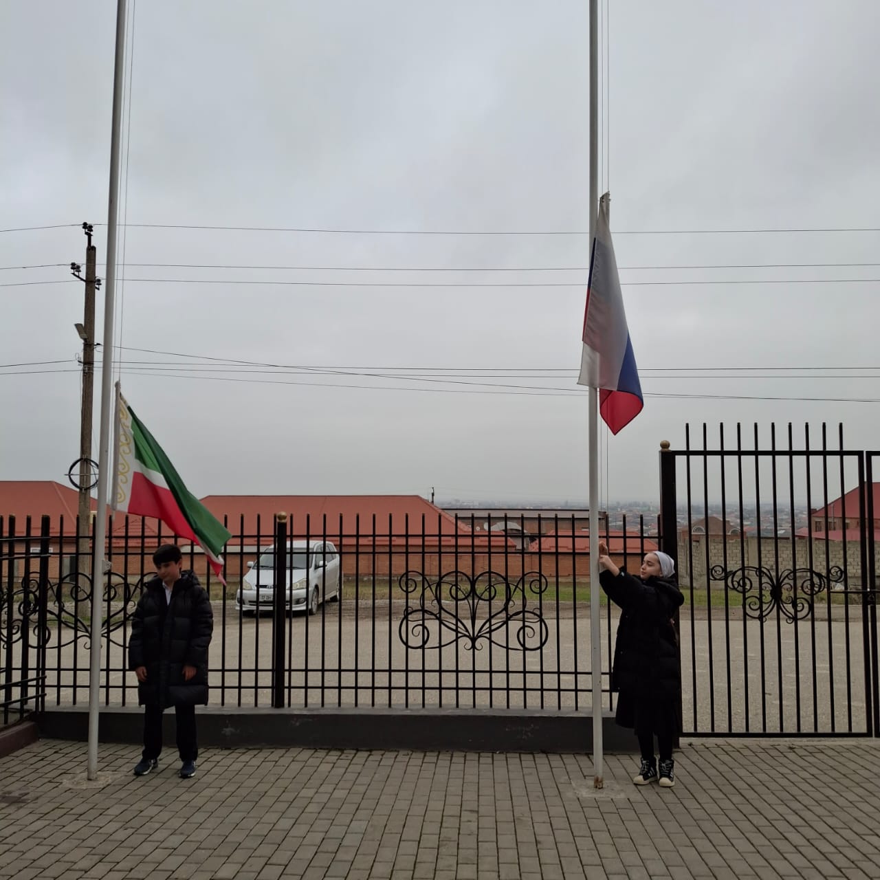Поднятие флагов ЧР и РФ